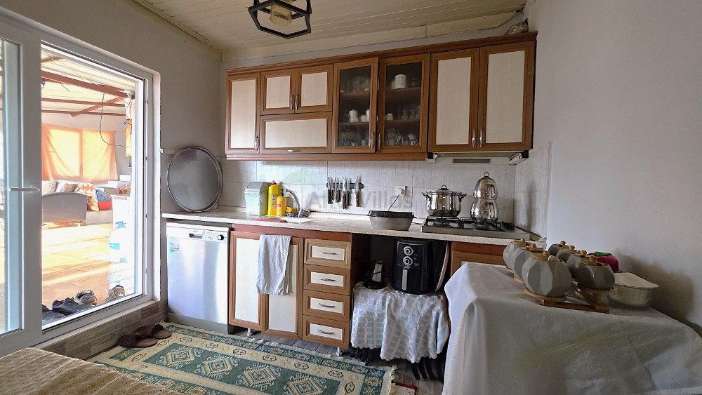 Üst katta toplamda 2 oda, 2 banyo, 2 mutfak, bir salon ve bir teras bulunmaktadır.